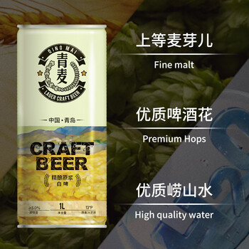 青麦(QINGMAI)13度精酿啤酒 1L*6桶头道原浆白啤 整箱兔年春节年货送礼礼盒装