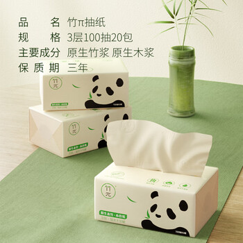 竹π抽纸 竹浆本色纸 3层100抽*20包 软抽面巾纸(整箱销售)