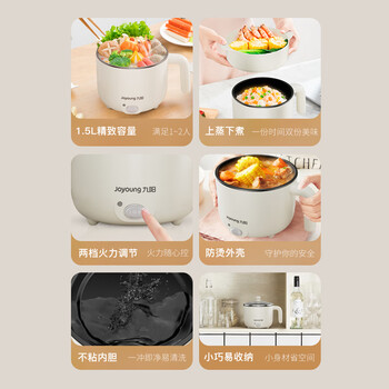 九阳(Joyoung)电煮锅小电锅宿舍小锅电蒸锅 学生寝室一体泡面小火锅多功能锅一人电火锅F-15Z605B