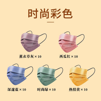 海氏海诺大麦一次性医用外科口莫兰迪彩色情侣口罩非灭菌型独立包装50只