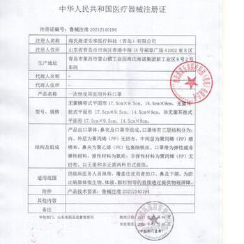 注册人或者备案人信息 海氏海诺乐享医疗科技(青岛)有限公司