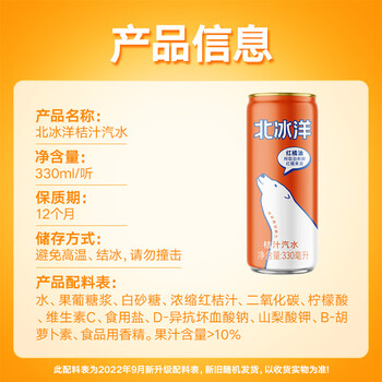 北冰洋 桔汁汽水 经典果汁汽水 碳酸饮料 330ml*6罐/试饮装