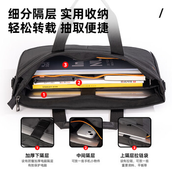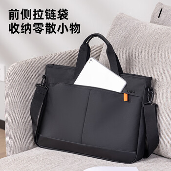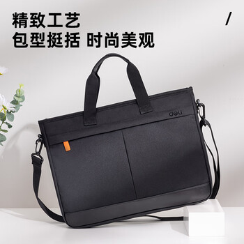 得力(deli)(deli)加厚立体办公手提袋/会议包/事务包/商务拉链袋公文包男便携 URINO系列黑色