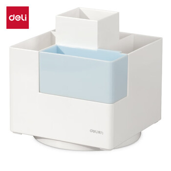 得力(deli)创意个性旋转笔筒 简约儿童学生多功能笔桶 办公桌面储物盒 化妆品收纳盒 蓝色PK200