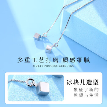 老银匠s925耳饰女爱立方银耳线女长款银饰品情人节礼物送女友银耳线新年
