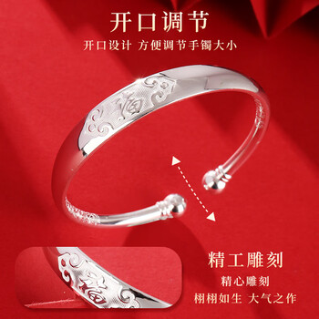 老银匠s999足银手镯女祥云福手镯送妈妈奶奶款银镯子老人福字银手镯