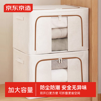 京东京造 布艺收纳箱2只装66L家用衣物棉被储物百纳箱加厚牛津布钢架支撑
