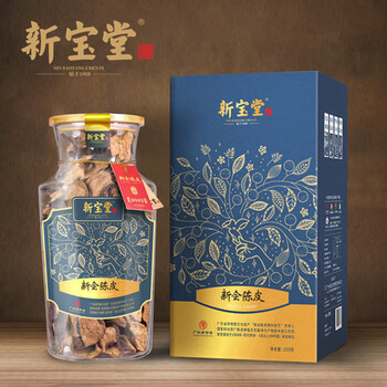 岭南新宝堂 新会陈皮 玻璃瓶礼盒250克泡茶 十年陈皮-福泓瓶