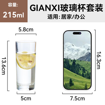 GIANXI加厚玻璃水杯夏季家用耐高温果汁杯啤酒杯牛奶杯学生礼物6只装