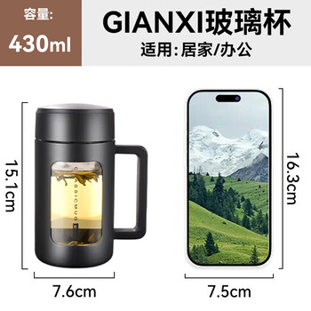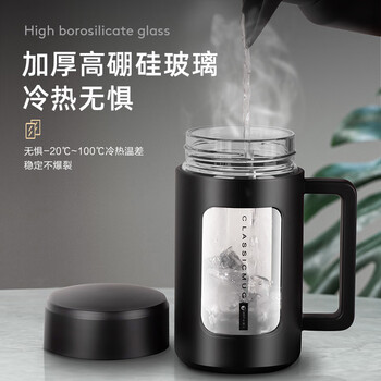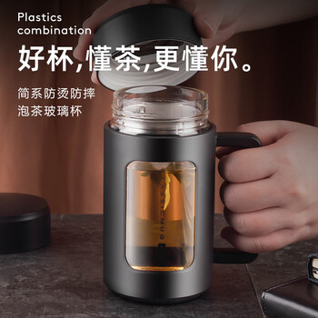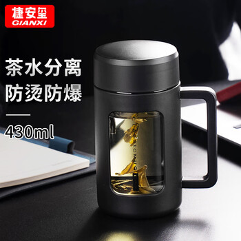 捷安玺玻璃茶杯大容量高硼硅泡茶杯防摔男士双层茶水分离茶杯430ml