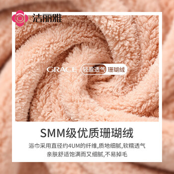 洁丽雅(Grace)浴巾女夏天吸水速干家用吸水男洗澡情侣款大人裹巾 粉色 70*140cm