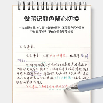 得力(deli)多功能4色圆珠笔 0.7mm子弹头按动笔原子笔中油笔 (黑红蓝绿) 5支/盒DL-33413