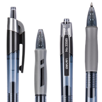 得力(deli)臻顺滑中性笔签字笔 0.5mm子弹头按动笔水笔 办公用品黑色 12支/盒DL-33589