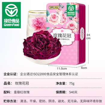 贡苑 【绿色食品】玫瑰花茶特级大朵花冠王重瓣墨红平阴无硫磺75g花茶