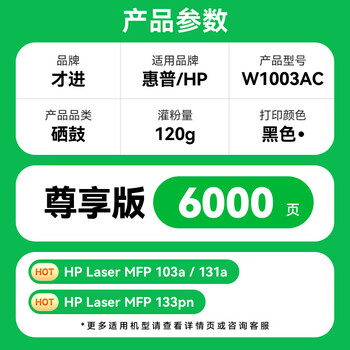 才进适用惠普103a硒鼓带芯片131a打印机硒鼓HP Laser MFP 133pn碳粉墨盒易加粉w1003ac激光复印一体机墨粉盒