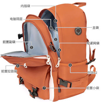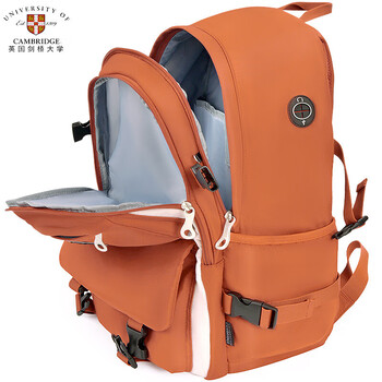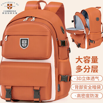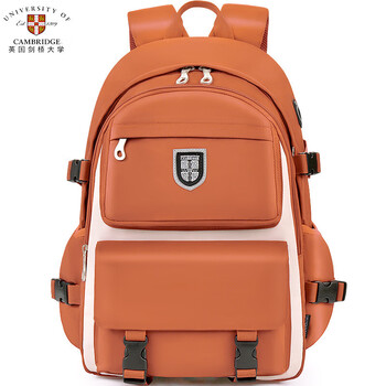 剑桥大学CAMBRIDGE初中学生书包男女孩轻便减负高中生背包多口袋大容量休闲运动双肩包CA453(棕红)