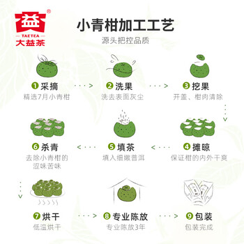 大益TAETEA茶叶3年陈料普洱熟茶小青柑 100g*2 送长辈茶叶礼盒