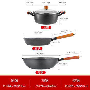Debo德铂锅具套装无涂层煎炒铁锅汤锅三件套