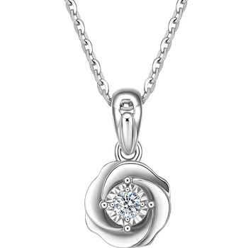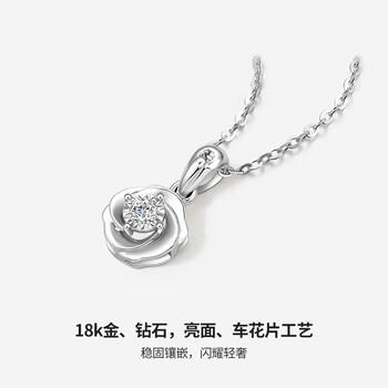 周六福18k金钻石吊坠女玫瑰花花朵生日礼物W0411267不含链约5分