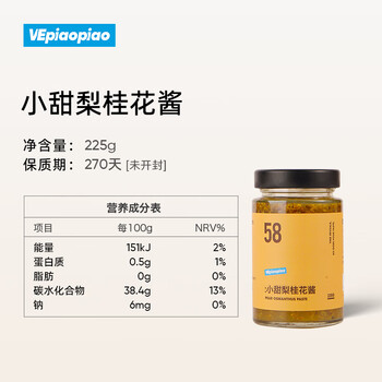 VEpiaopiao小甜梨桂花酱0脂肪无白砂糖 桂花酿果酱冲饮面包涂抹净含量225g