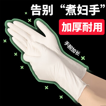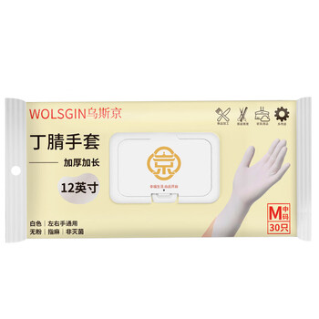 乌斯京(WOLSGIN)一次性丁腈手套 30只装*大号干家务洗碗加厚白色加长橡胶丁晴手套