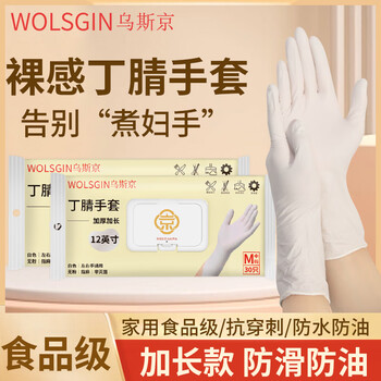 家庭清洁/纸品---清洁用具---手套/鞋套/围裙乌斯京(WOLSGIN)一次性丁腈手套加长款1298