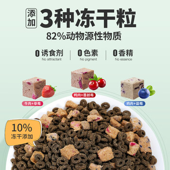 脱水牛肉,玉米,小麦,水解鸡肝,脱水鸡肉,大米,鸭油,水解蛋白,甘蓝,啤酒酵母,海藻粉,西红柿,沸石粉,胡萝卜,苹果,牛骨粉,车前子,牛油果干,丝兰。