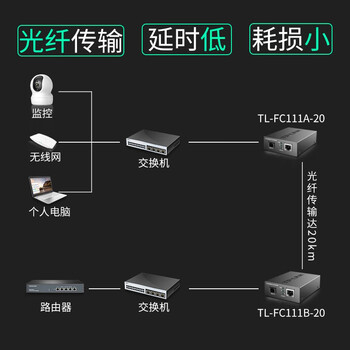普联(TP-LINK)普联百兆单模单纤光纤收发器20公里一对1光1电企业级单芯光电转换器SC口TL-FC111A+TL-FC111B套装