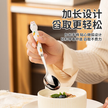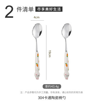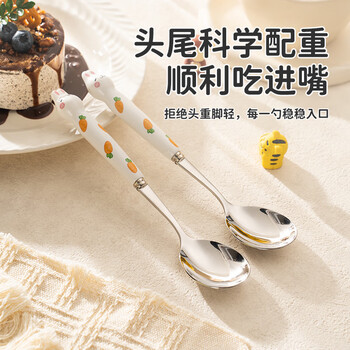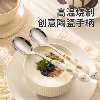 彩致(CAIZHI)304不锈钢勺子汤勺儿童勺陶瓷柄餐具可爱兔子勺子2支装 CZ6617
