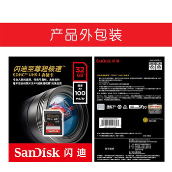 闪迪(SanDisk)32GB SD内存卡 4K V30 U3 C10 相机存储卡 读速100MB/s 写速90MB/s 微单/单反相机内存卡