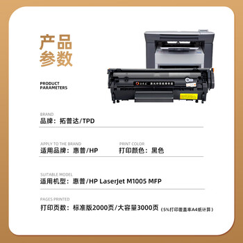 拓普达适用惠普m1005硒鼓HP LaserJet m1005mfp易加粉墨盒黑白激光打印机12A西鼓一体机墨粉碳粉盒Q2612A粉盒