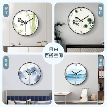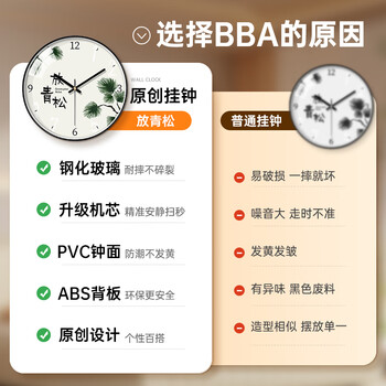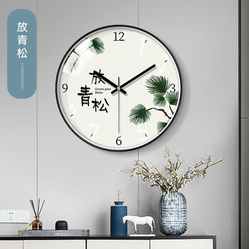 BBA 挂钟客厅装饰家用新中式时钟挂墙石英钟创意挂表 放青松30cm
