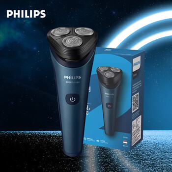 PHILIPS飞利浦 剃须刀 进口三刀头全身水洗胡须刀1h快充50min续航闪剃2系男士礼物 S2508 蓝色