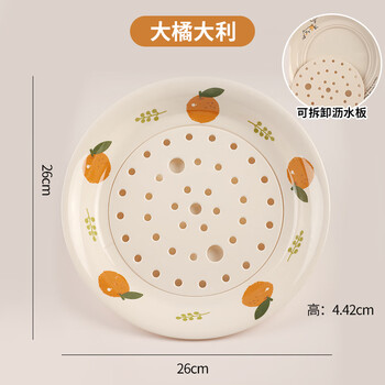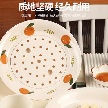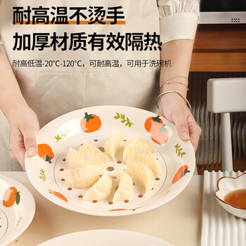 星坊 圆形饺子盘沥水双层盘家用饺子盘食品级密胺 大橘大利款