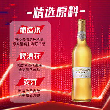 百威(Budweiser)金尊啤酒 500ml*12瓶 大瓶整箱装 Supreme