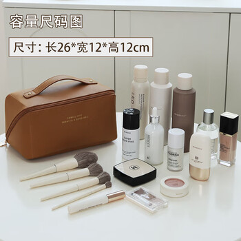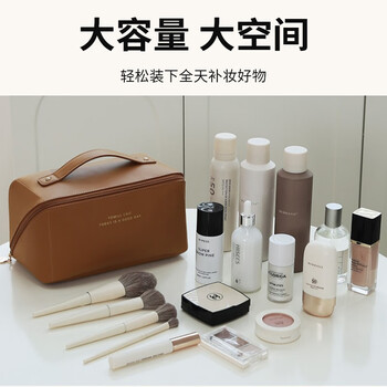化妆包便携出行精致百搭大容量洗漱包出差旅行化妆品收纳包-摩卡棕