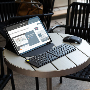 多彩(Delux)MF10超薄折叠无线蓝牙键鼠套装激光翻页折叠空中鼠标便携移动办公手机平板ipad电脑通用黑色