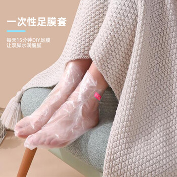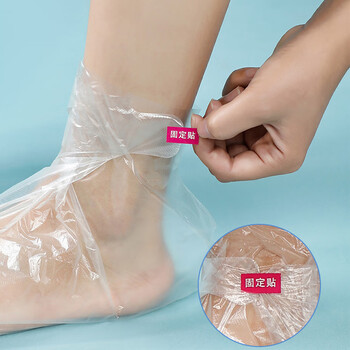 庭好一次性脚套脚膜套塑料护理足疗袋泡脚试鞋长筒足套100只带固定贴