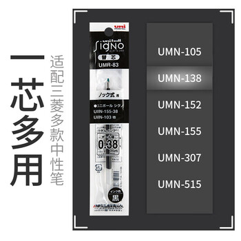 uni三菱 uni-ball UMR-83按动笔芯0.38mm中性笔蓝黑色替芯 适用签字笔UMN-138系列 10支
