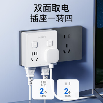 飞利浦(PHILIPS)86型转换插座插头/插座转换器/一转四分控/多功能插座/一转多插座扩展/插排扩展器