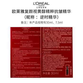 欧莱雅(LOREAL)复颜抗皱紧致视黄醇精华30ml面部精华液( 欧莱雅逆时瓶逆时精华 抗皱紧致 淡化细纹)