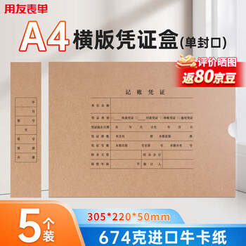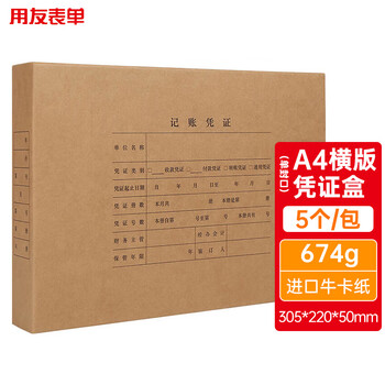 用友表单A4横版记账凭证盒 单封口674g加厚牛卡纸 305*220*50mm 5个/包 A4记账凭证纸会计档案装订盒6700