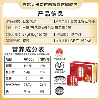五常大米 官方溯源保真 吾尝香 有机稻花香2号 东北大米节日礼盒礼品企业福利 5kg(1kg*5)/十斤×1