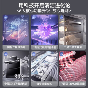 优盟(UM)消毒柜家用嵌入式厨房小型消毒碗柜三层120L大容量 304不锈钢 紫外线二星消毒UX331S