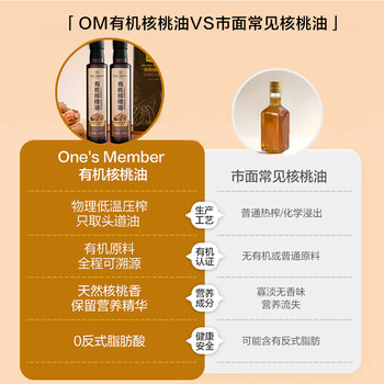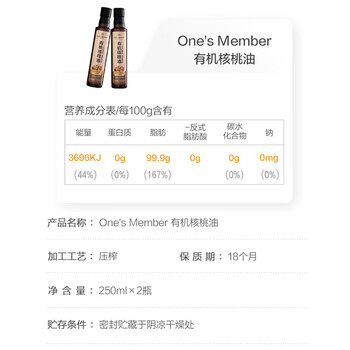1号会员店 0反式脂肪酸有机核桃油 亚油酸250ml*2热炒辅食【保真核桃油】