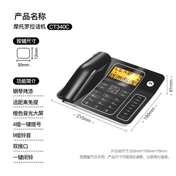 摩托罗拉(Motorola)电话机座机固定电话 办公家用 5米远距离免提 大屏幕 大按键 钢琴烤漆 CT340C(黑色)