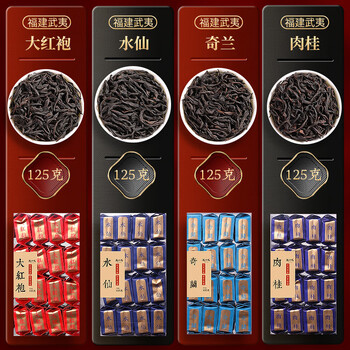 陈一凡 茶叶武夷山岩茶乌龙茶大红袍肉桂四大岩茶浓香型乌龙茶组合500g