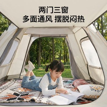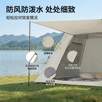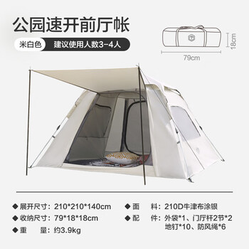 京东京造 公园前厅帐篷4.4㎡涂银防晒加厚牛津布户外露营装备3-4人米白色