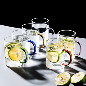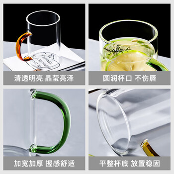 唯铭诺玻璃喝水杯耐热茶杯子套装家用带把透明高硼硅玻璃杯 6只装300ML