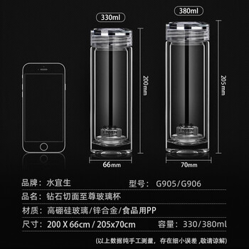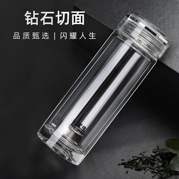 水宜生玻璃杯茶杯男士双层水杯高档商务透明便携女防烫弱碱性办公杯子